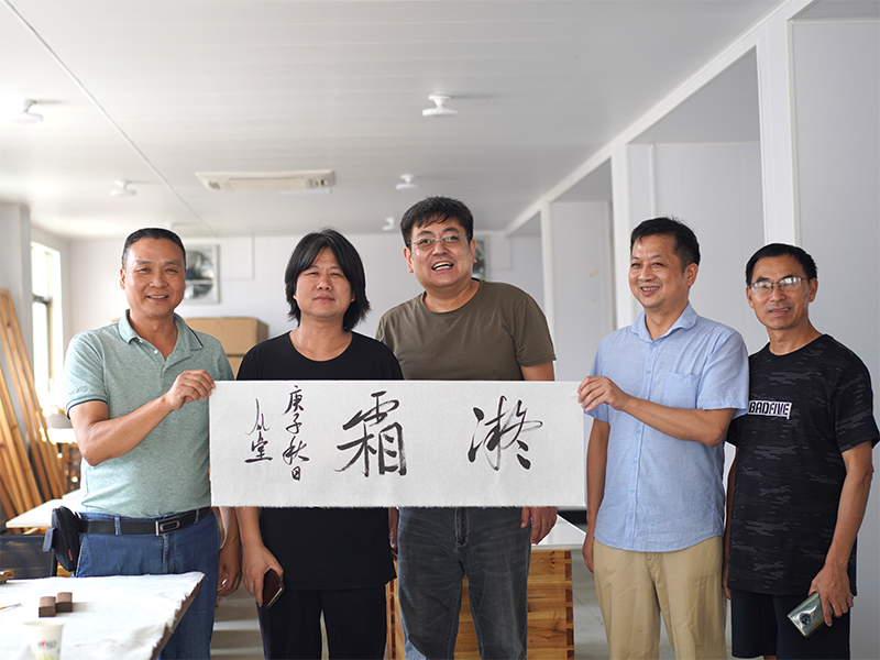 浙江省文化廳新安傳統(tǒng)文化調(diào)研,畫(huà)家樓森華、樓秋華和版畫(huà)藝術(shù)家王超在公司?;罩蓁ぜ?
