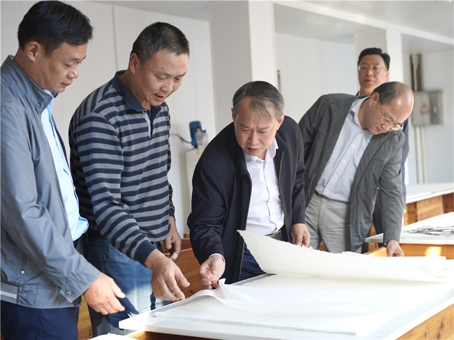 2021年1月26日,休寧縣政協(xié)主席儲(chǔ)曉華來(lái)公司調(diào)研徽州楮皮紙制作技藝傳承和發(fā)展情況。