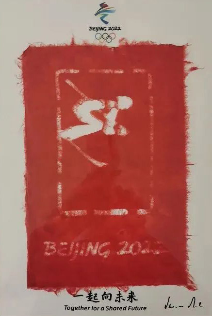 下圖便是使用徽州楮皮紙制作的北京冬奧會(huì)紙藝作品紀(jì)念品。一張厚實(shí)的白色襯紙上張貼著特別裁剪過的紅色襯紙,映出栩栩如生的高山滑雪樣式和“BEIJING 2022”字樣,十分高雅。